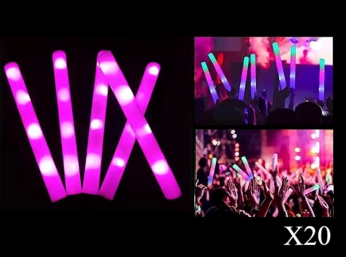 Lot de 20 Bâtons Lumineux LED en Mousse Rose 47cm