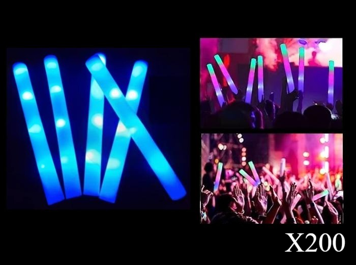Lot de 200 Bâtons Lumineux LED en Mousse Bleu 47cm